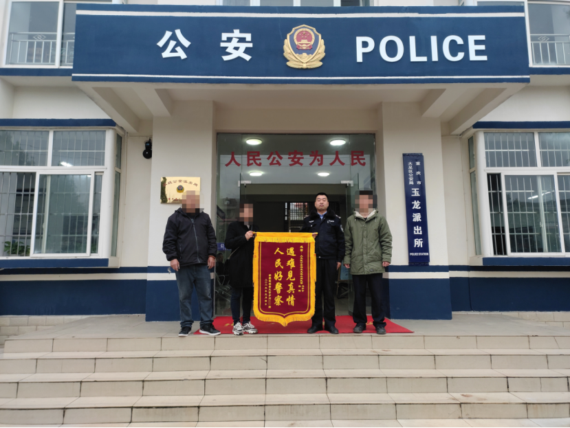 经过3小时的不断努力,终于在玉龙镇黄桷村5组“黑湾”山沟一处缝隙中找到走失的女孩,顺利将其救起,平安交到家人手中。家属为了表示感谢,将印有“遇难见真情,人民好警察”字样的锦旗送到玉龙派出所。