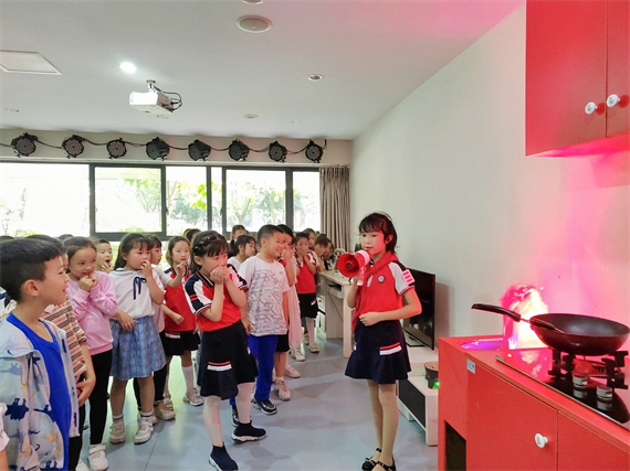 同时,除课堂课本学习、中心体验实践,学校还将教室过道、图书馆、食堂、操场等地设置成消防安全教育的“实战场”,让学生在浓厚的消防安全教育氛围中明白其重要性,用环境促进教学具体开展。