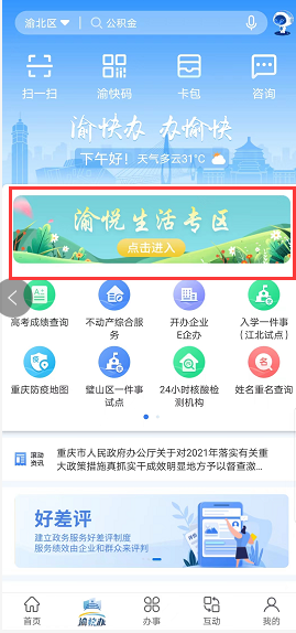 “渝快办”渝悦生活服务专区上线,“住业游乐购”来这里全搞定!>>详情