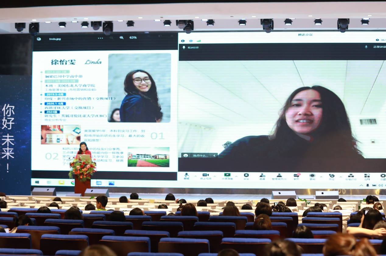 两位毕业于巴川中学,目前在海外名校的在读生,现场展开国际视频连线,让家长和孩子们兴奋不已,时空在这一刻被打破。