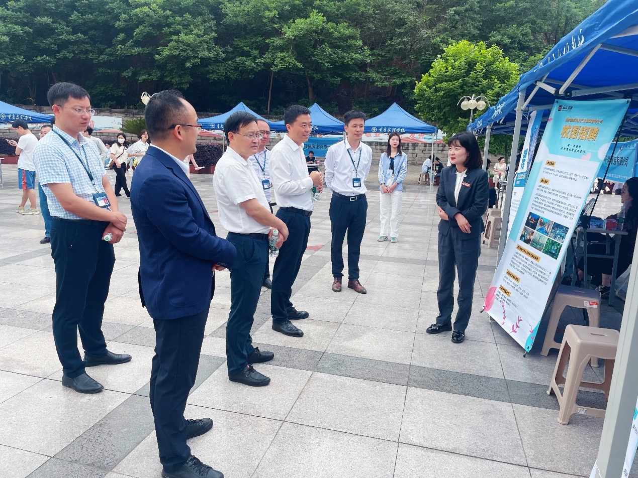 重庆文理学院副校长金盛、李天福,重庆师范大学地理与旅游学院党委副书记熊宇,重庆第二师范学院旅游与服务学院副院长左太安,学校招生就业处处长高一文及旅游学院相关负责人出席本次双选会,鼓舞毕业生就业信心的同时,与用人单位就校企对接、专业实习等方面工作进行了深入交流。