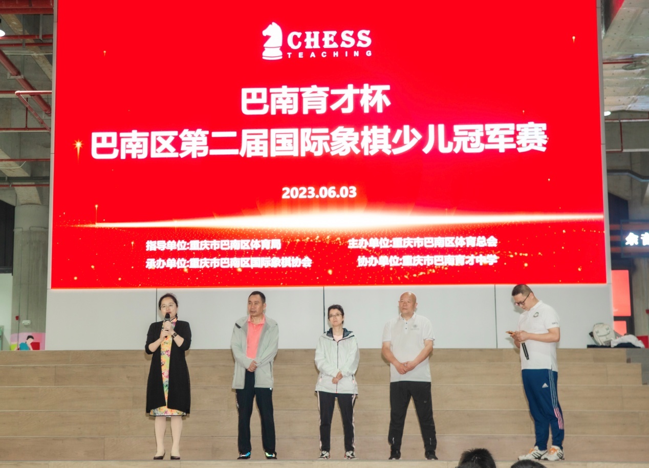 巴南区体育总会主席肖陵川,巴南育才实验中学校长唐玉梅,巴南区育才中学体育中心李强教授,重庆市国际象棋协会理事、巴南区国际象棋协会会长、女子国际特级大师田甜出席本次大赛。