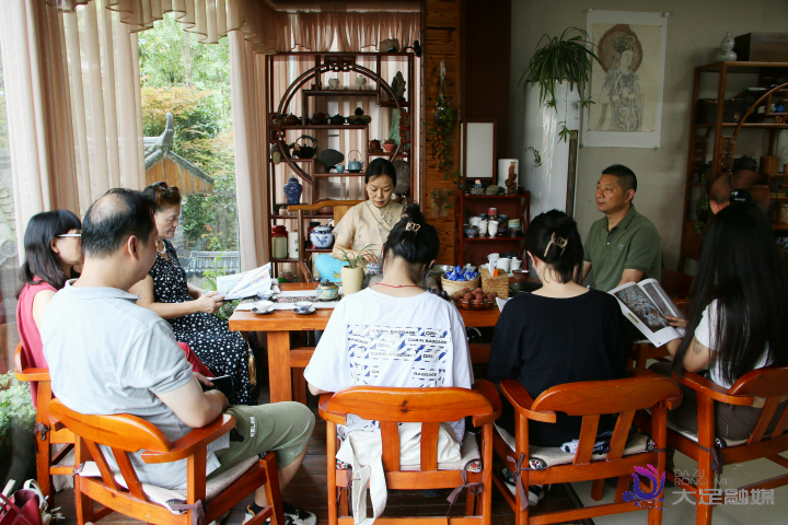 华龙网-新重庆客户端讯(通讯员 侯小梅 实习生 张玉汝)“李先生,请问你是如何将创作与大足石刻联系起来的?”“传统壁画与现代水墨手法在你的作品中体现得淋漓尽致,怎样才能将两者完美地融合在一起呢?”7月10日,重庆墨荷斋书画院静谧的院子里迎来了一批特殊的客人,来自重庆传媒职业学院的同学们来到大足对知名画家李文生进行专访。