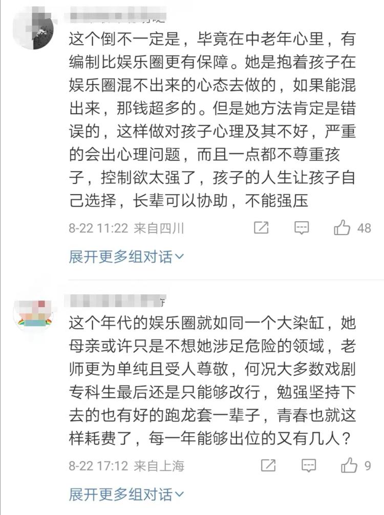 有观点认为,或许佳佳母亲有自己特定的经济或家庭方面的考虑,是出于爱而表达的担忧。尽管女孩的才华被中央戏剧学院认可,但戏剧行业往往被认为是变动性较大且收入不稳定的行业,母亲可能出于对女儿的未来担忧,不希望她选择这样的职业道路。母亲试图通过阻止入学来保护女儿,以期望她能够拥有更稳定和安全的未来。此外,有网友认为女孩离家读书也会导致家庭支出增加以及家庭成员的分离,母亲可能担心这种改变会给家庭带来不确定性。