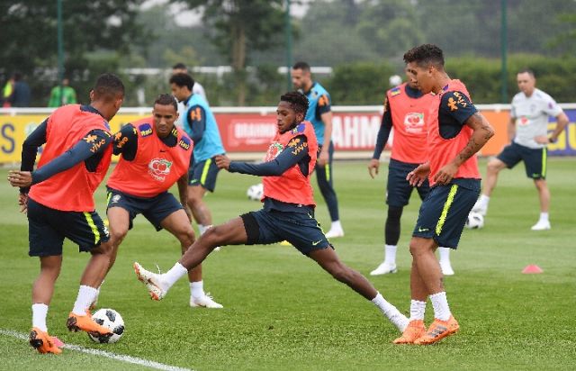 巴西国家足球队在英国伦敦进行赛前训练,备战即将开赛的2018年俄罗斯世界杯足球赛。