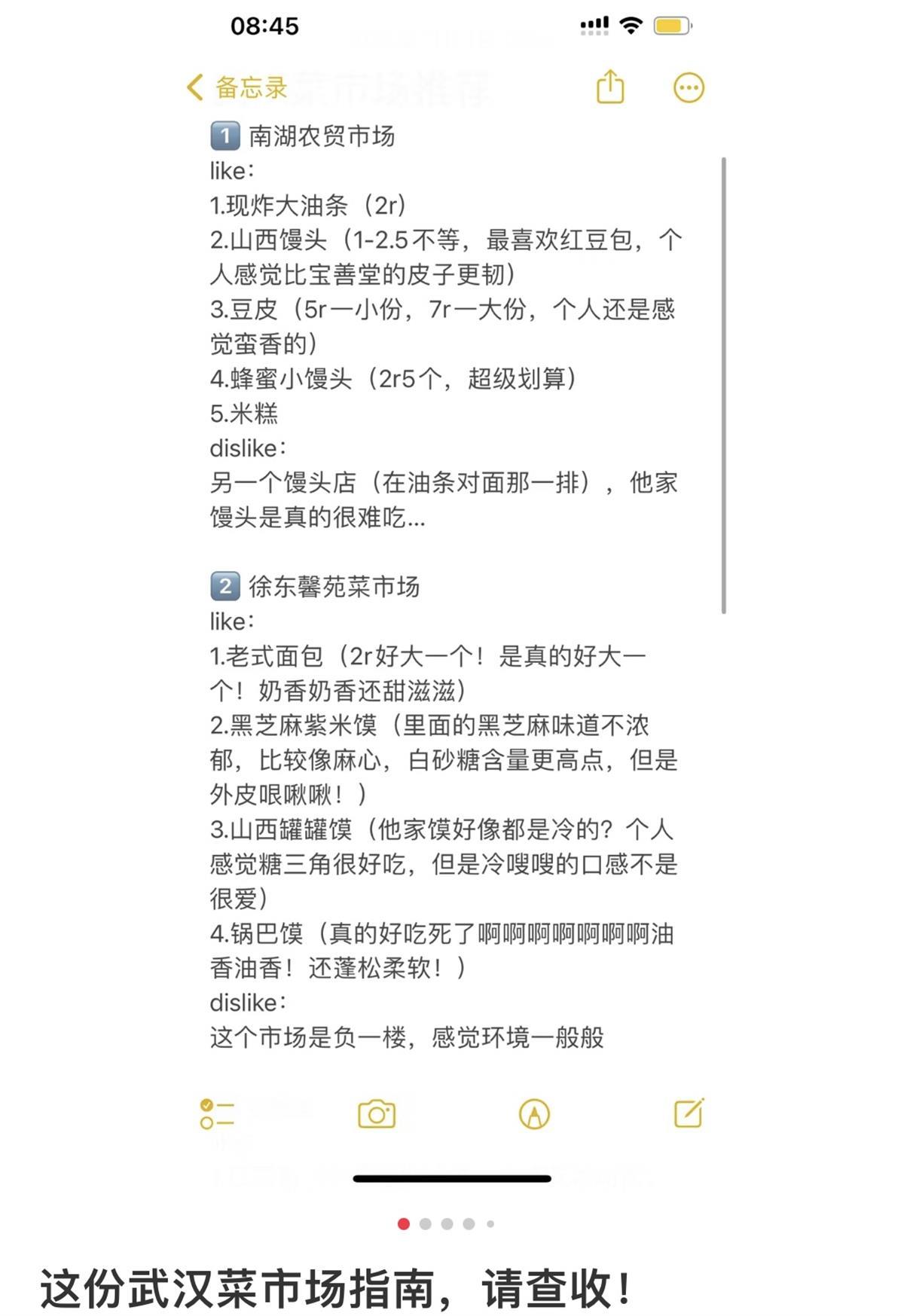 “攻略里介绍的4家武汉菜市场,都是我自己经常去的。一周会去1-2次,主要以面点为主。”杜思齐说。