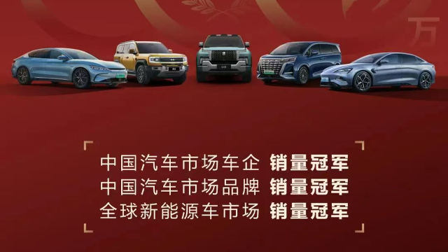 比亚迪从2021年的74万辆,到2022年的186万辆,再到2023年的302万辆,如此大体量之上的高速增长,比亚迪既是中国唯一,更是全球唯一,是中国汽车百年奋进的辉煌成就。这也帮助比亚迪从中国车企销量第一,到中国品牌销量第一,再到蝉联世界新能源销量第一,这是新能源时代创造的奇迹,证明了中国汽车未来的无限可能,也是比亚迪为全球新能源汽车行业发展交出的圆满答卷。未来,比亚迪会继续坚持用技术创新满足人们对美好生活的向往,引领汽车行业转型新能源。