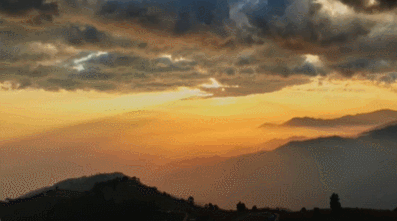 随着红日冉冉升起 云雾与阳光晕染开来