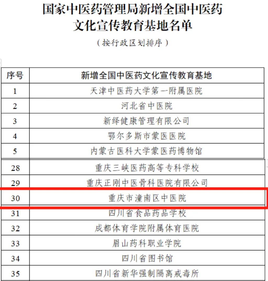 据悉,本次新增的全国中医药文化宣传教育基地共有3家来自重庆,潼南区中医院为其中唯一的公立中医医院。