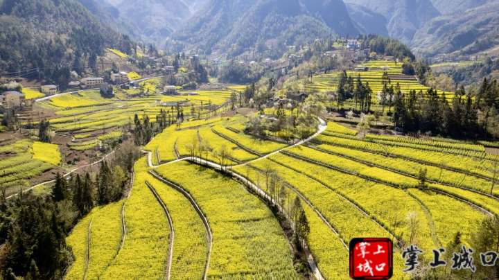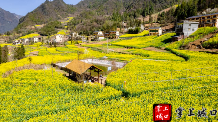 人间芳菲月,春暖百花开。在城口蓼子乡梨坪村,连片的油菜花开得正盛,与远处的村庄交相辉映,一幅春意盎然的和美乡村画卷在眼前徐徐展开。春风拂过,油菜花海泛起金灿灿的波浪,花香扑鼻。