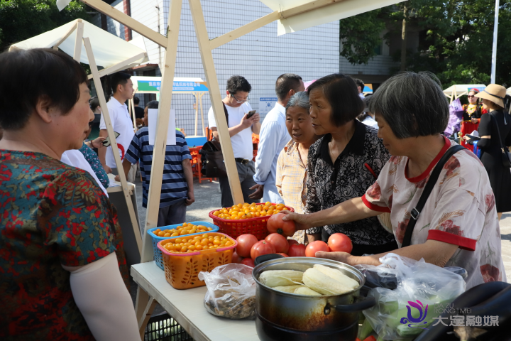 开幕式现场一侧,龙水蔬菜五金集市人气很旺,现场摆满了当天采摘的新鲜蔬菜和水果,以及各式五金农具。物美价廉的农产品引人瞩目,游客纷纷上前挑选购买。