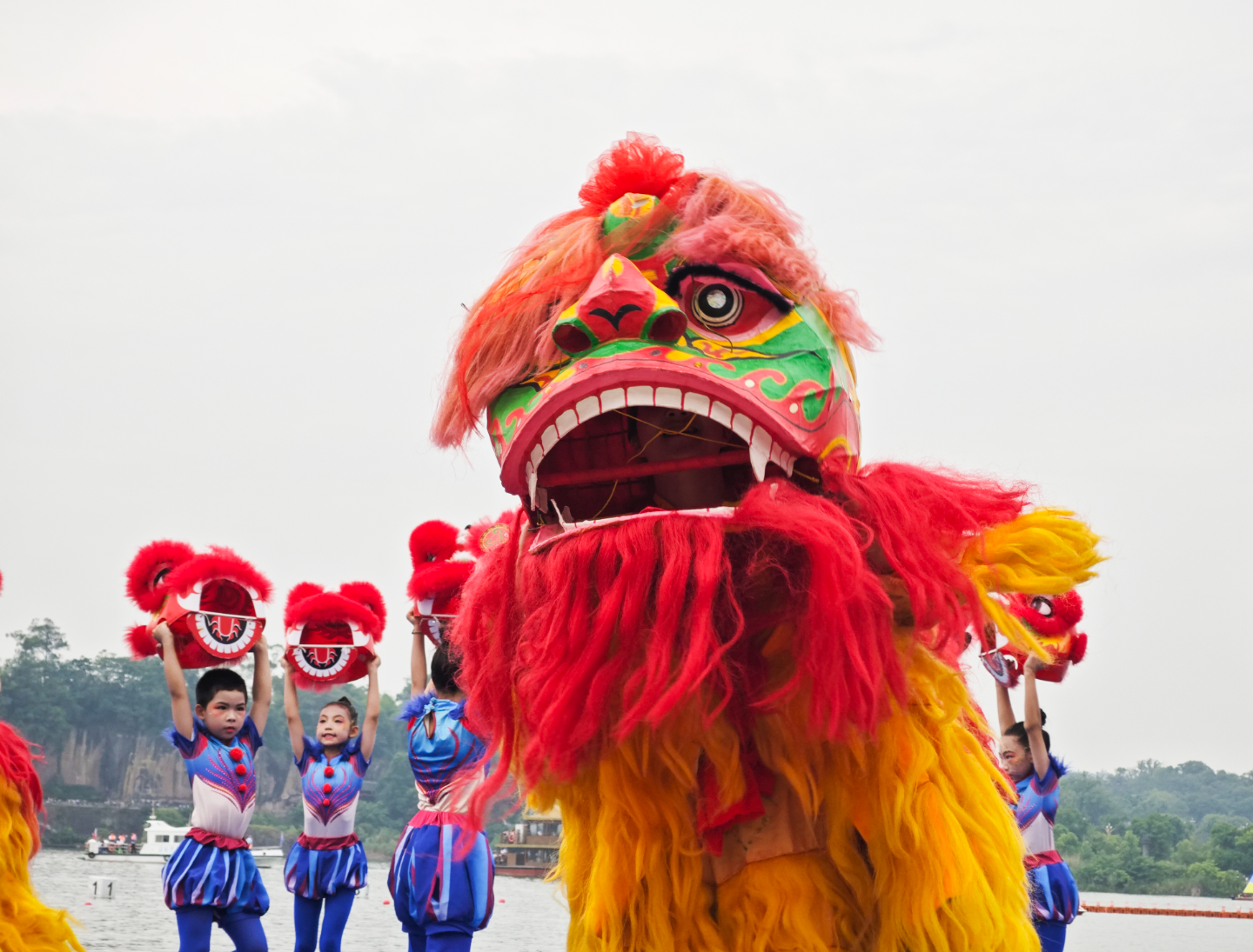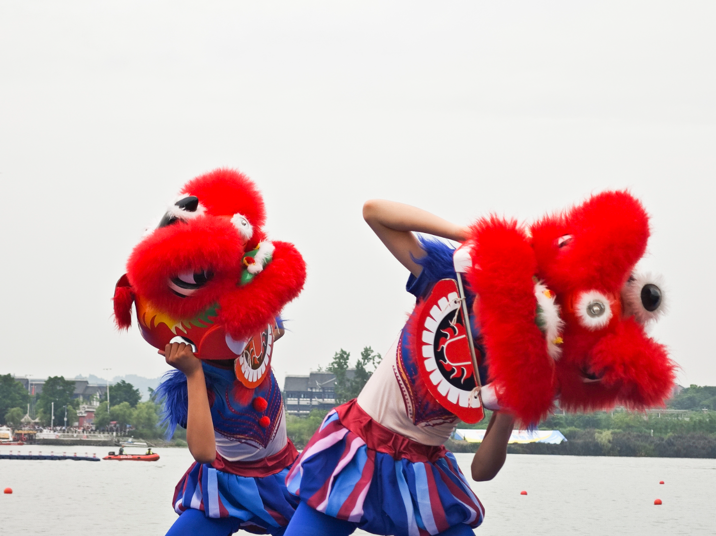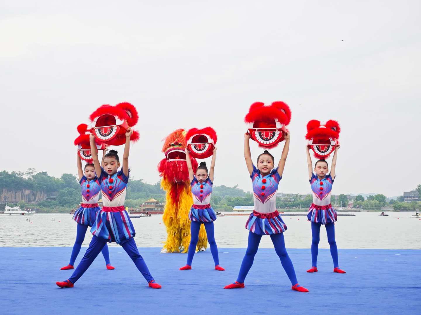 6月1日,2024年重庆市第四届龙舟公开赛(潼南站)在金福岛龙舟广场举办。赛前,热闹喜庆的花岩女子狮舞表演来为龙舟赛添彩。