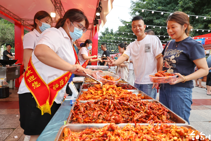 当天晚上,钱塘镇文化广场上人山人海,十分热闹。独唱、电音狂欢、动感舞蹈等文艺节目先后登场,精彩的表演赢得现场观众阵阵掌声。在游戏互动环节中,剥小龙虾比赛和喝啤酒比赛将现场气氛带向了高潮。观众们一边品尝热辣滚烫的小龙虾、畅饮沁人心脾的冰啤酒,一边欣赏着精彩节目,现场弥漫着一股浓浓的烟火气。