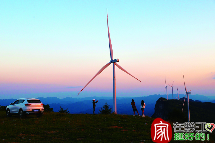 8月24日,游客在黔江区五福岭风电场游玩。立秋后,黔江区持续高温,不少市民和游客选择到高山上的五福岭风电场和麒麟盖风电场避暑、纳凉,同时欣赏山地“大风车”景观。