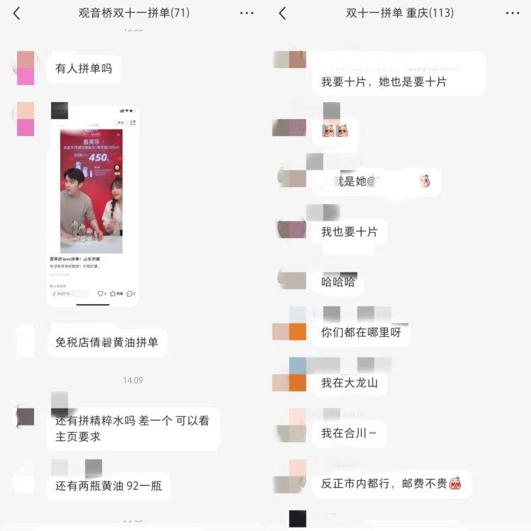 记者注意到,这些拼单群的人数一般在几十人到上百人,进群的大多在同一个城市。当一个人说出需求,有人响应后,很快就会转入私聊,然后组建自己的小群。