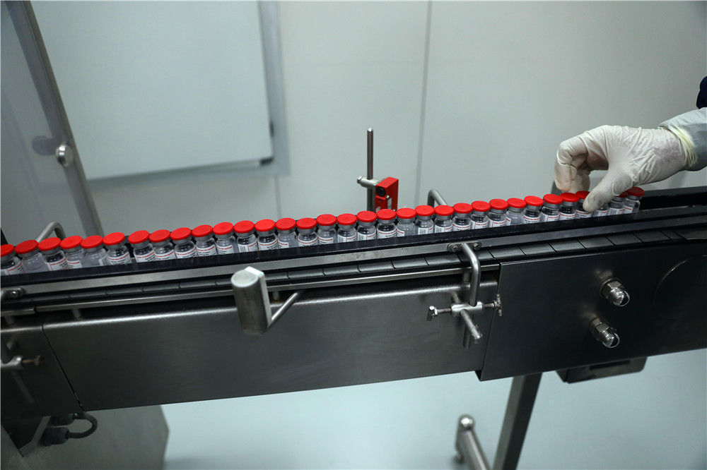 这是2021年9月6日在埃及吉萨的埃及生物制品与疫苗公司疫苗生产厂拍摄的疫苗生产线上的新冠疫苗。2021年4月21日,中国科兴公司与VACSERA公司签署在埃及生产科兴新冠疫苗的协议。5月21日,埃及从中国采购的首批科兴疫苗原液运抵开罗,埃及由此成为非洲大陆第一个同中国合作生产新冠疫苗的国家。新华社发(艾哈迈德·戈马摄)