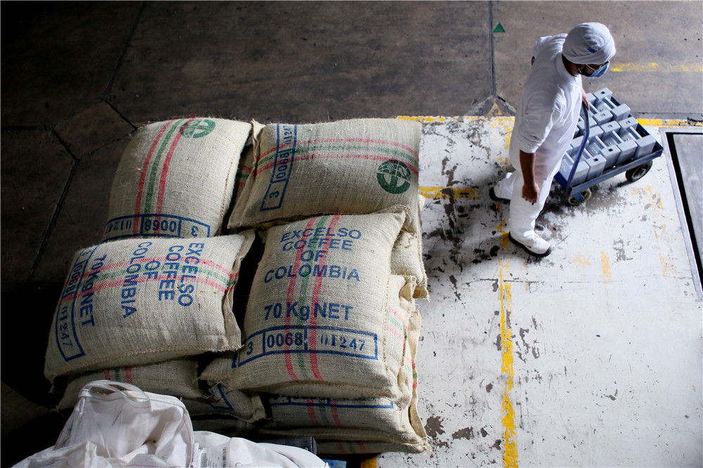 2021年10月27日,工人在哥伦比亚麦德林的哥氏咖啡工厂工作。哥伦比亚的哥氏咖啡企业将参加于11月在中国上海举行的第四届中国国际进口博览会。新华社发